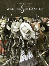 Wasserschlangen von Tony Sandoval erinnert mit seiner poetischen Geschichte und der Darstellungen der Figuren, an die märchenhaften Filme von Tim Burton wie „Nightmare Before Christmas“ (USA 1993). Tony Sandoval setzt viel auf seine Fantastischen Bilder, um seine Geschichte zu erzählen und die hierfür richtige Atmosphäre zu schaffen, Bilder, die man auf sich wirken lassen sollte, um völlig in diese fremde aber wahrlich fantastische Welt einzutauchen.
