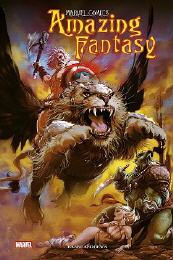 In der Miniserie „Amazing Fantasy“ landen Captain America, Spider-Man und Black Widow in einer wilden Fantasy Welt voll mit alten Bekannten. Doch das Hauptaugenmerk gilt dabei natürlich dieser Fantasy Welt. Hier gibt es nicht nur die geflügelten Löwen wie auf dem Cover zu sehen. Sondern auch Zentauren, Orks, Froschmenschen und Drachen.